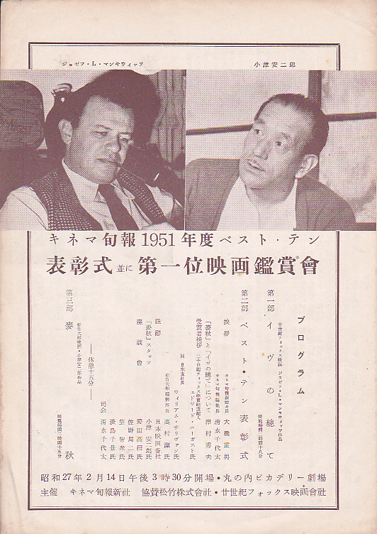 裏:『炎の空・懺悔の刃』(小津安二郎監督昇進第一回力作)