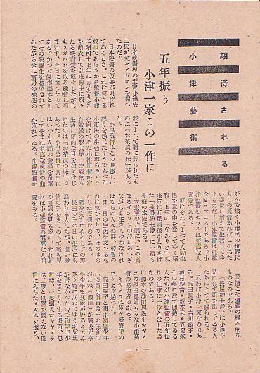 「スタヂオ通信 ◆小津組次回作品準備中」(4頁)